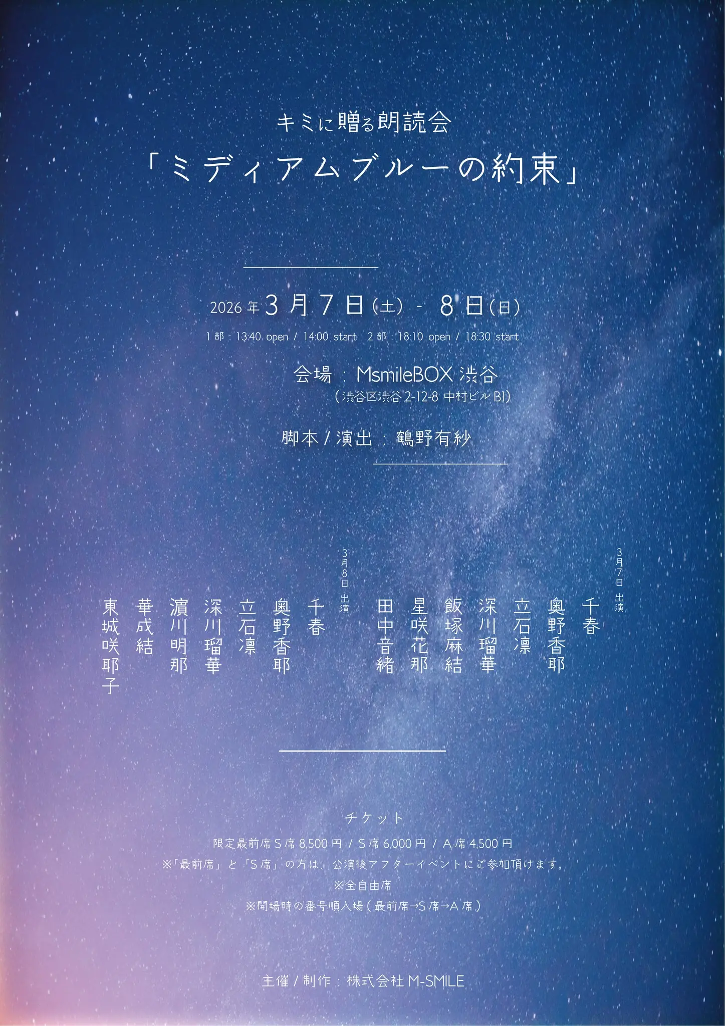 3/8 2部 キミに贈る朗読会「ミディアムブルーの約束」