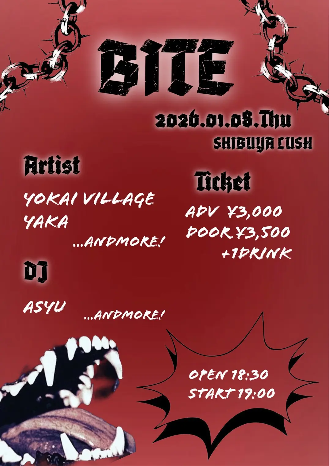 出演者 Yokai Village / Asyu / YAKA / SHAF / Morrincy