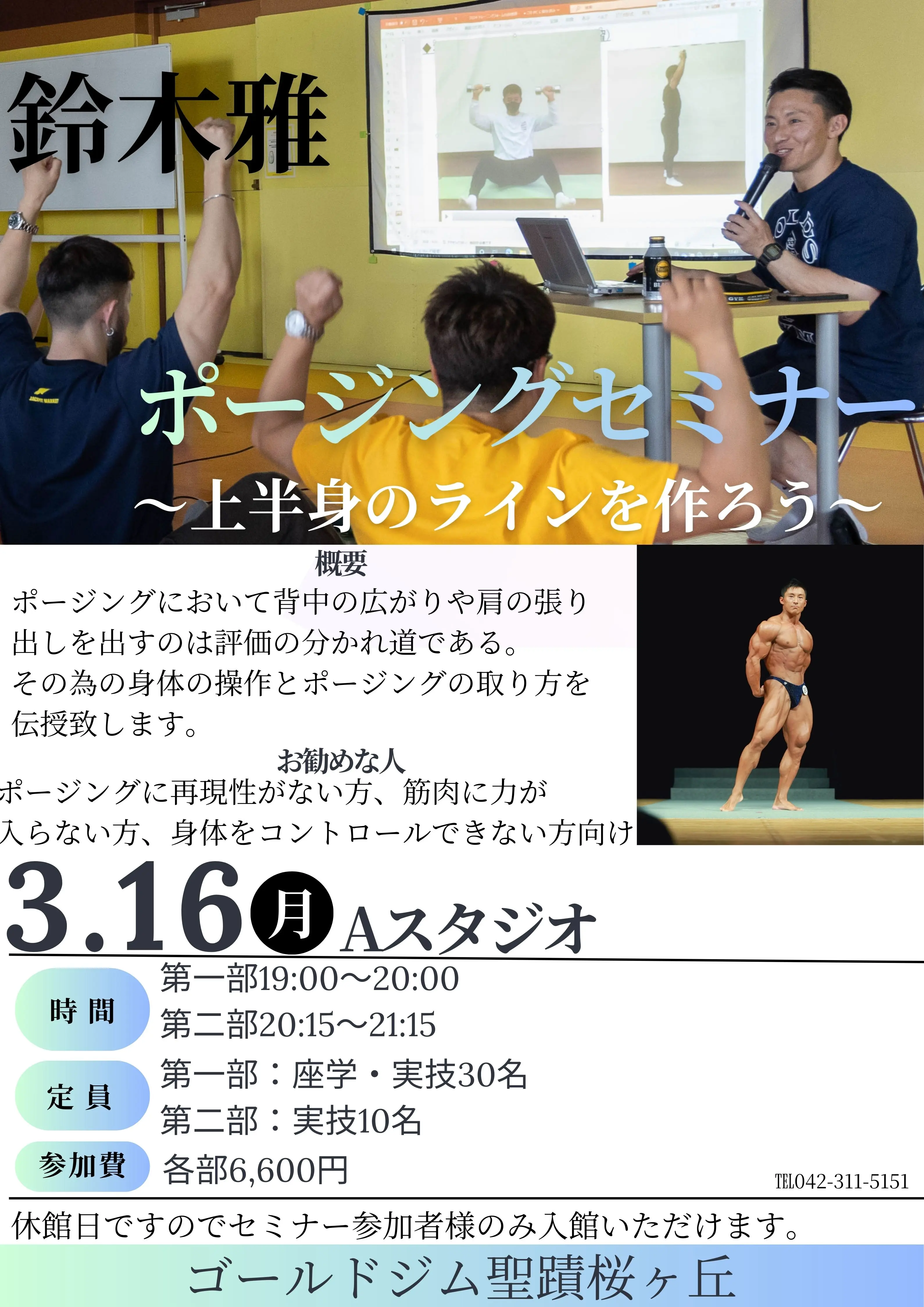 鈴木雅ポージングセミナー~上半身のラインを作ろう~【ゴールドジム聖蹟桜ヶ丘】