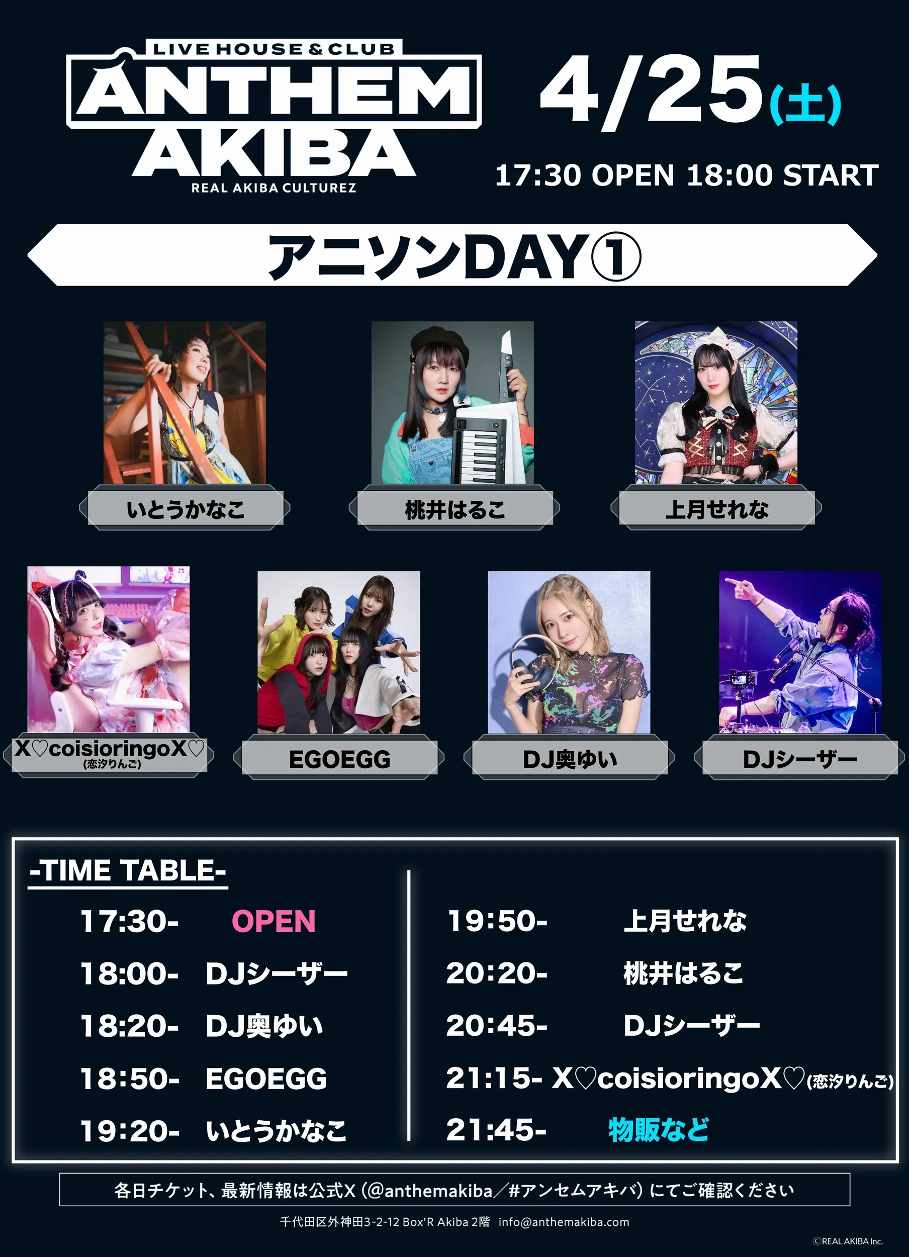 4/25(土)ANTHEM AKIBA -OPENING WEEK 2026-【アニソンDAY①】 at 秋葉原ANTHEM AKIBA