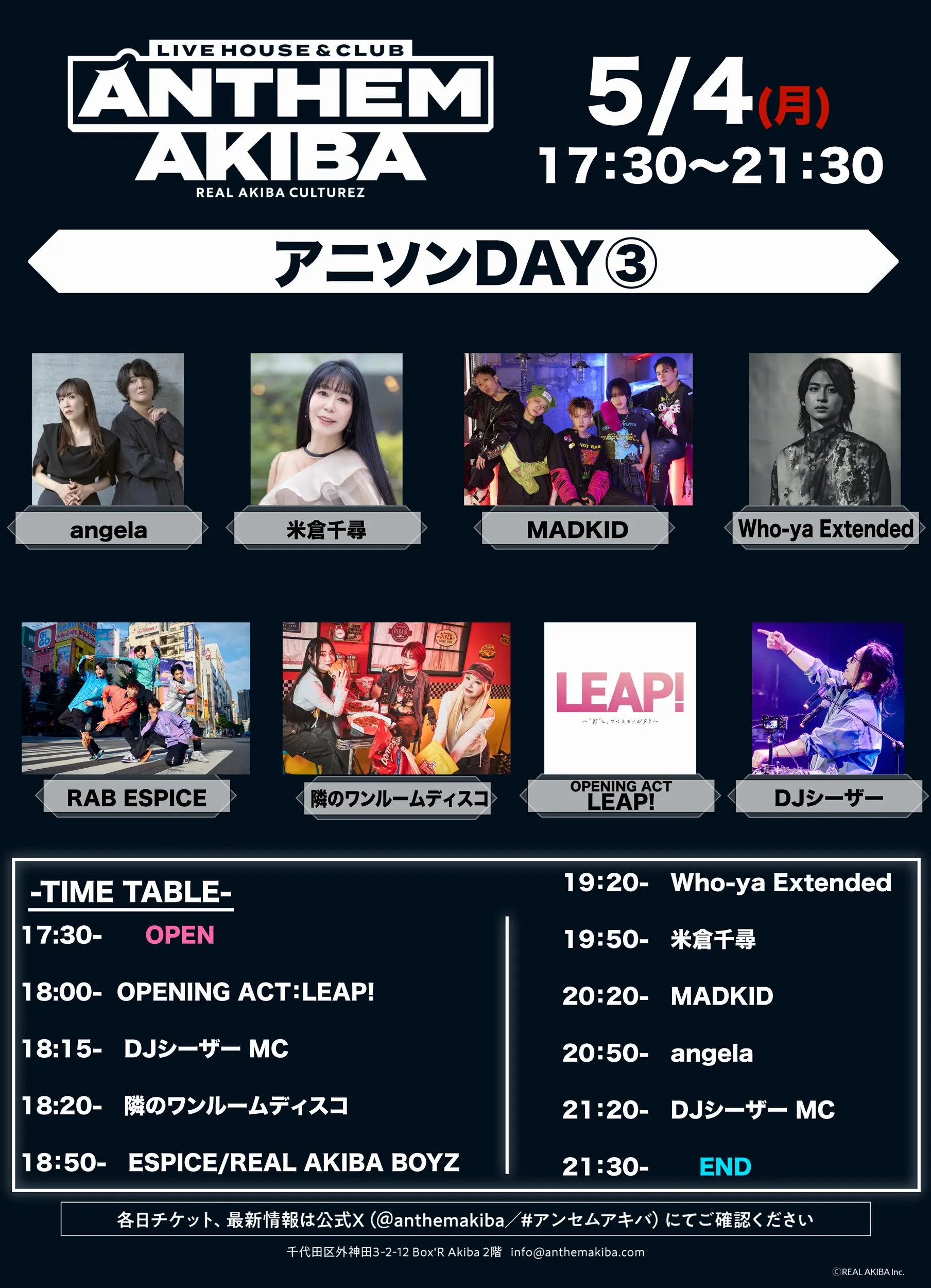 5/4(月祝)ANTHEM AKIBA -OPENING WEEK 2026-【アニソンDAY③】 at 秋葉原ANTHEM AKIBA