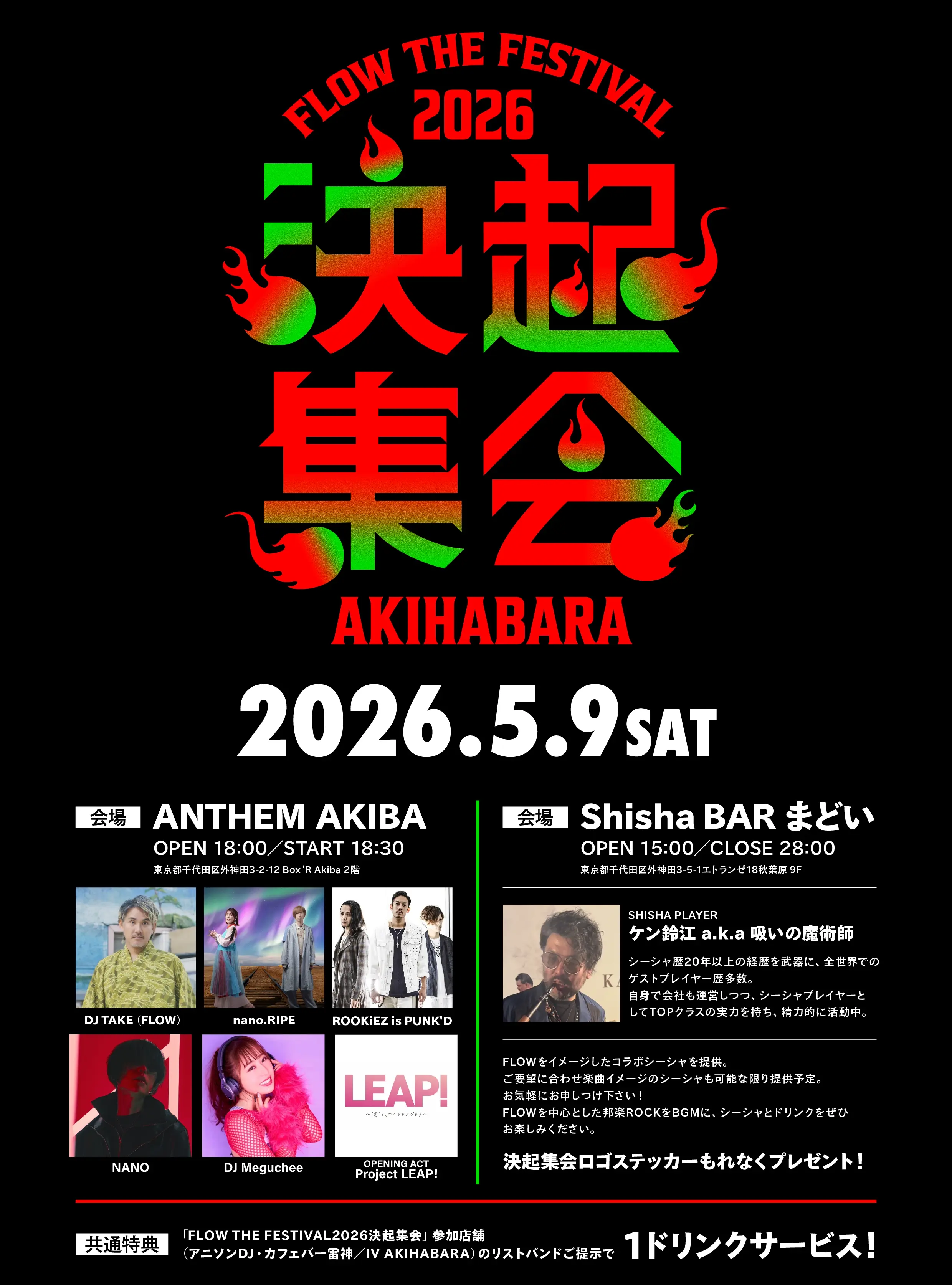 5/9(土)FLOW THE FESTIVAL 2026 ~決起集会・秋葉原~(サーキット第3会場)at 秋葉原ANTHEM AKIBA