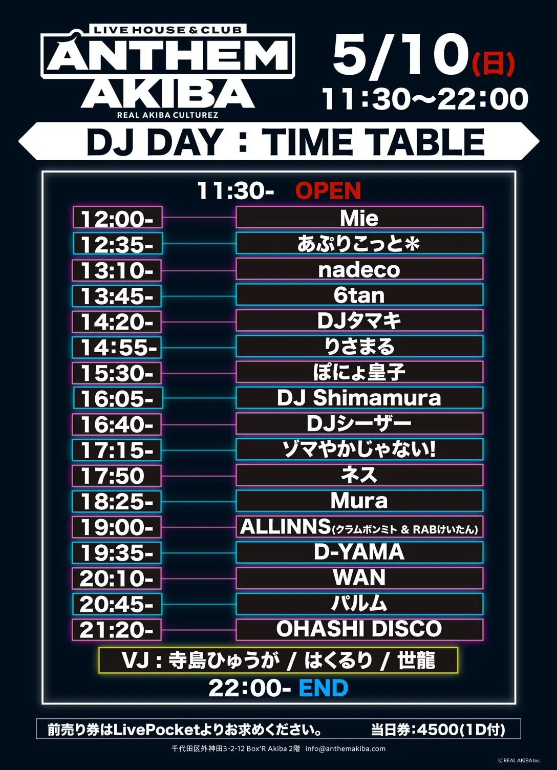 5/10(日)ANTHEM AKIBA -OPENING WEEK 2026-【DJ DAY】at 秋葉原ANTHEM AKIBA