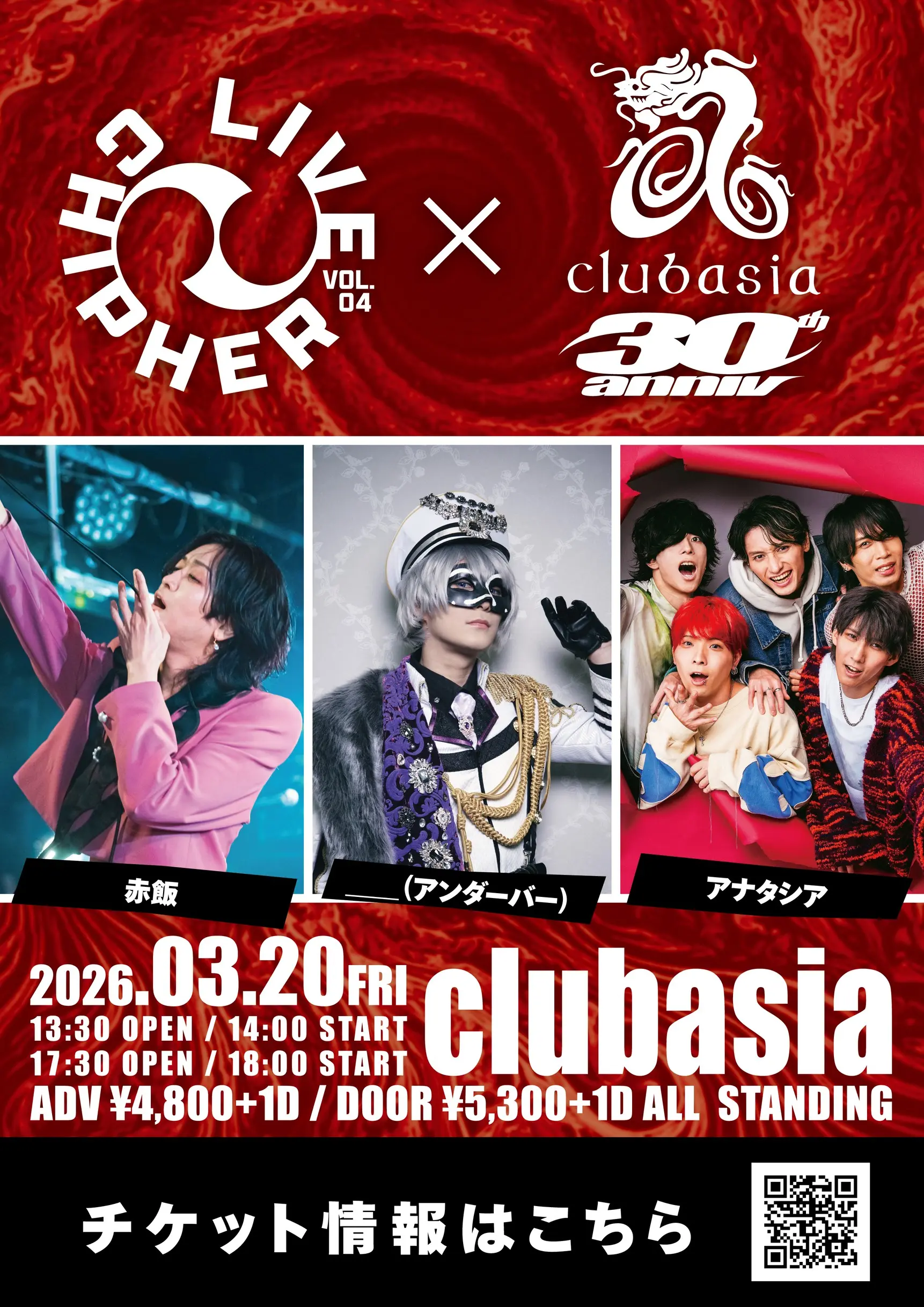 2026.3.20(Fri.)at clubasia昼公演:開場13:30 開演 14:00夜公演:開場17:30 開演 18:00前売り券:¥4,800 + 1D代