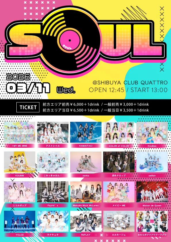 出演者 RePLAY / Malcolm Mask McLaren / Payrin’s / Maison de Queen / YOLOZ / われらがプワプワプーワプワ / I MY ME MINE / アストレイル / COLOR of COLOR / KissBee / KOURiN / こみっきゅおん! / zanka / 透色ドロップ / selfish / ニコルポップ / メイビーME / ラナキュラ / ルルネージュ / KAMAITACI
