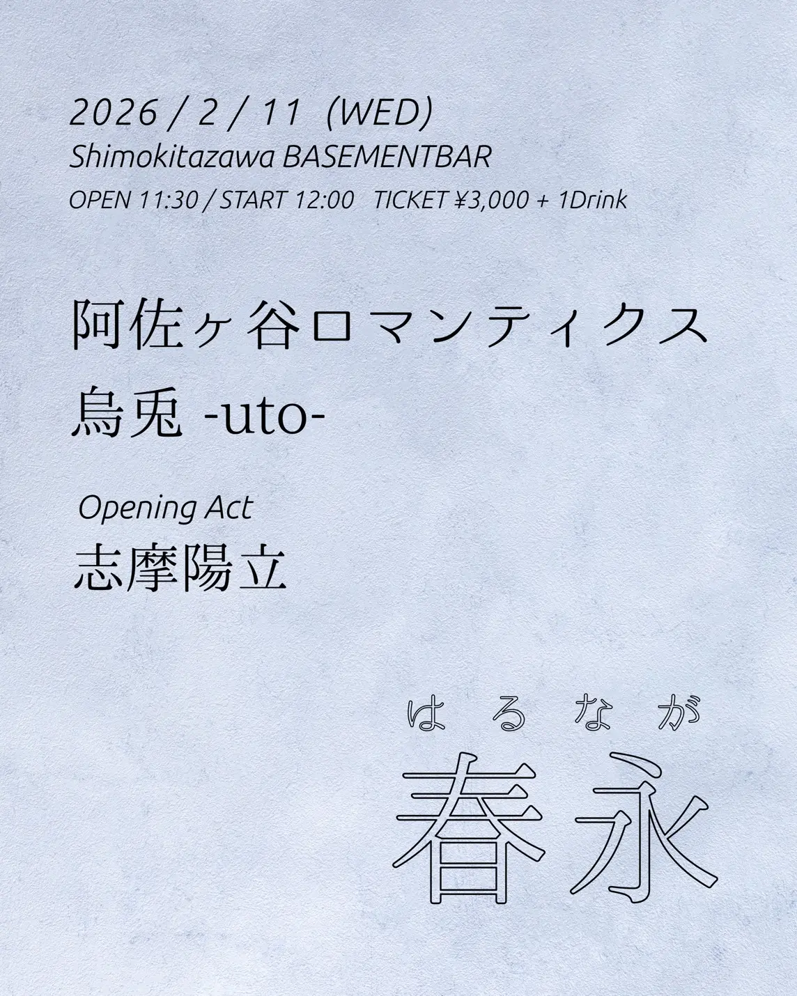 出演者 阿佐ヶ谷ロマンティクス / 烏兎 -uto- / 志摩陽立